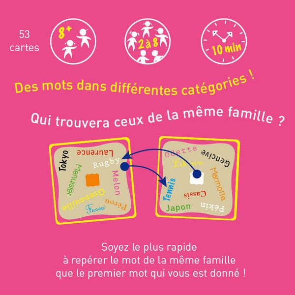 Soyez le plus rapide à donner le mot de la même famille que le premier qui vous est donné !Un jeu de catégorisation : avec un mot de départ, à vous de trouver le mot d’arrivée.