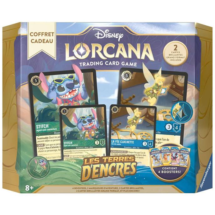 Coffret cadeau contenant 2 cartes brillantes et leur version grand format, 4 boosters, et 2 marqueurs illustrés