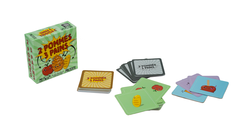 2 Pommes 3 Pains est un jeu d’annonce. Les joueurs tirent une carte à tour de rôle et annoncent une valeur de Pomme et une valeur de Pain. Si un joueur se trompe ou prend trop de temps à réfléchir, il ramasse l’intégralité des cartes posées en pénalité. Pour gagner vous devez récupérer le moins de cartes possible. Oui, vous avez du pain sur la planche !