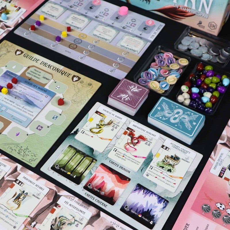 Vous êtes un dracologue amateur dans le monde de Wyrmspan, un endroit où des dragons de toutes formes, tailles et couleurs parcourent le ciel. Creusez un labyrinthe caché que vous avez récemment découvert sur vos terres et incitez ces belles créatures à se percher dans le sanctuaire de vos grottes.