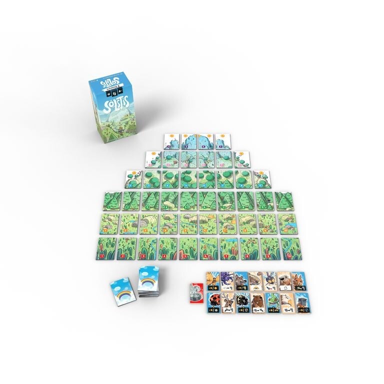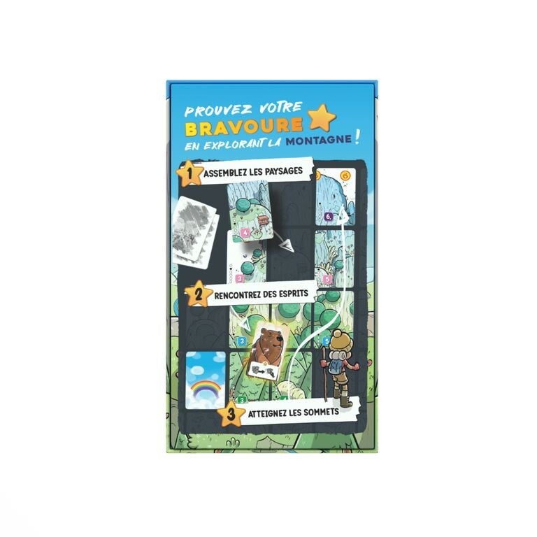Prouvez votre valeur et gagnez le plus d' ⭐️ possible en parcourant la montagne et en assemblant le plus grand nombre de tuiles Paysage possible, en rencontrant les esprits de la forêt et en allumant des feux sur les sommets en créant un chemin dans la vallée.
