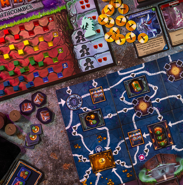 Plongez dans de nouvelles profondeurs avec Catacombes, le nouveau jeu de deck-building et d’aventure totalement indépendant de la gamme Clank !