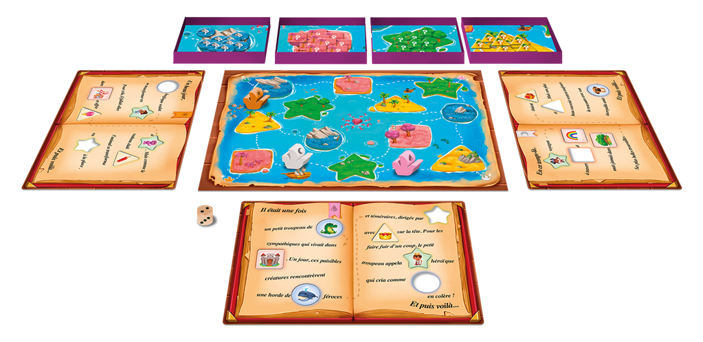Dans Et puis Voilà !, les jeunes joueuses et joueurs sont invités à créer leur propre histoire. Leur plateau de jeu comporte une histoire avec des trous de formes différentes. Déplacez votre bateau d’île en île avec votre dé. La forme de l’île atteinte vous indique quelle forme de jeton piocher. Bouchez un trou de la même forme avec votre jeton et complétez votre histoire !