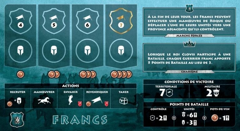 Le premier Royaume à contrôler 7 provinces ou à éliminer 2 rois adverses remporte la partie.