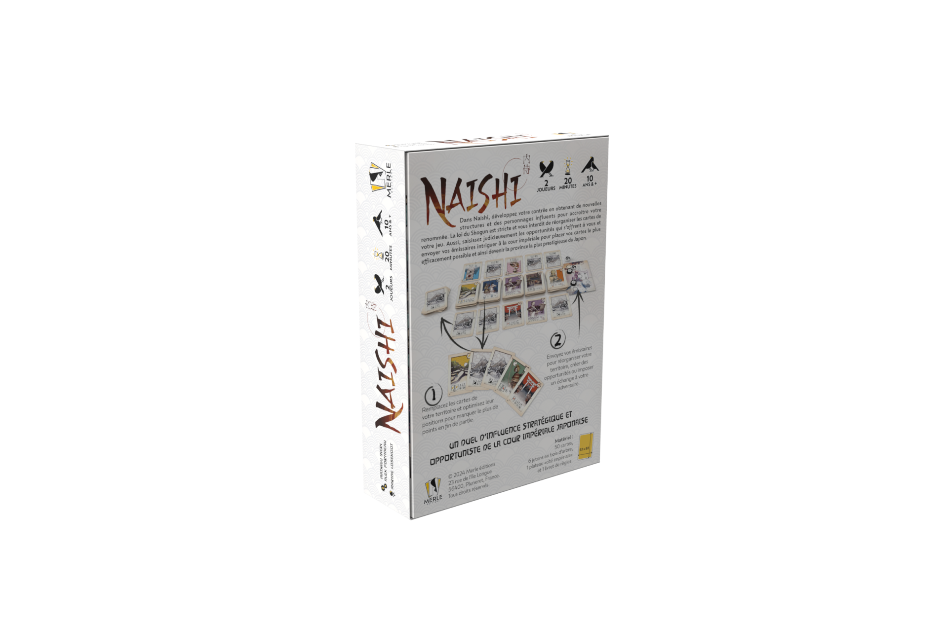 Dans Naishi, développez votre contrée en obtenant de nouvelles structures et des personnages influents pour accroître votre renommée. La loi du Shogun est stricte et vous interdit de réorganiser les cartes de votre jeu.