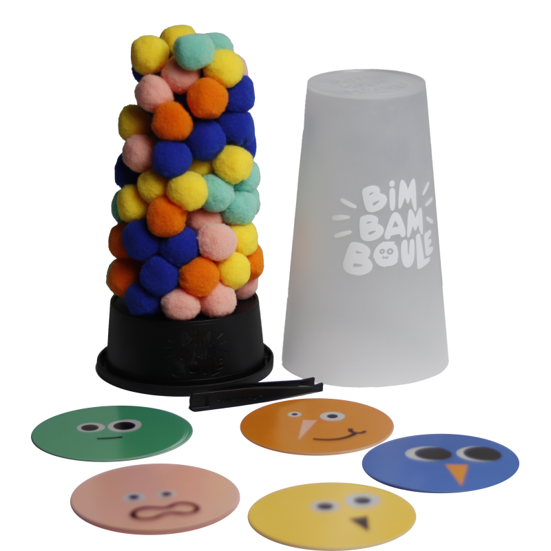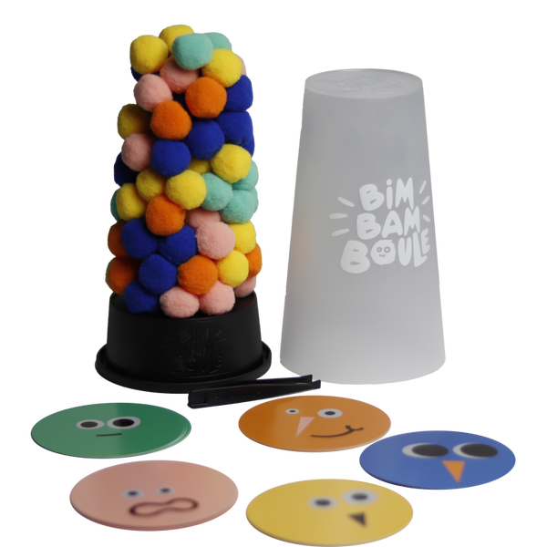 Le cœur de Bim Bam Boule réside dans ses adorables boules en moumoute, un matériau doux et agréable au toucher et silencieux pour les parents. Ces boules colorées forment une tour qu’il faut manipuler avec précaution : retirer une boule et la replacer plus haut sans faire tomber la structure. Une tension palpable s’installe à chaque mouvement, mêlée à des éclats de rire, surtout quand une tour vacille dangereusement.