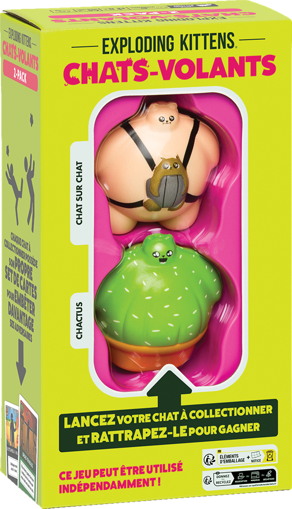Dans Chats-Volants, chaque duel est une explosion de fun : 2 chats en mousse, des cartes d’action complètement barrées, et une course contre la montre pour remporter la victoire. Facile à apprendre, hyper drôle à jouer et totalement rejouable. Collectionnez-les différents packs qui contiennent des chats en mousse aux looks très spéciaux et des cartes exclusives pour compliquer la tâche de vos adversaires avec des actions inédites. Et rien ne vous empêche de vous retrouver à plus de 2 joueurs pour tous vous affronter dans une succession de défis hilarants. Que le meilleur gagne !