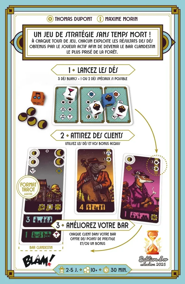 Plongez dans l'univers secret de la prohibition... A la tête d'un bar clandestin, tirez parti au mieux du partage des ressources interdites afin d'attirer des clients au pouvoir d'influence bien utile. Faites les meilleurs choix pour prospérer dans l'ombre et devenir l'adresse cachée la plus prisée de la forêt !