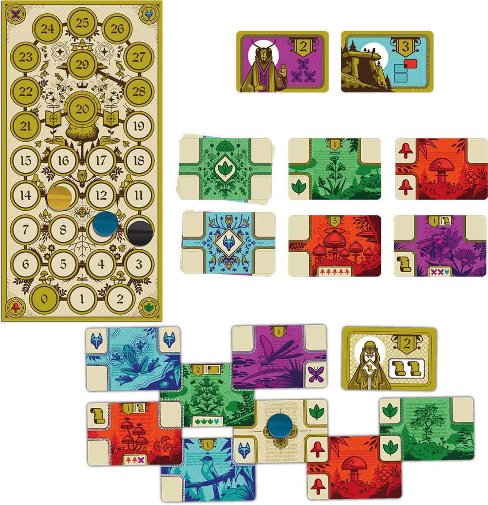 Placez vos cartes en fonction des ressources qu’elles vous apportent pour remplir les objectifs et élaborer le plus riche des manuscrits.