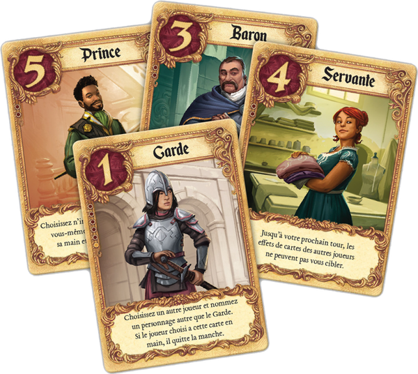 Dans ce jeu de cartes rapide, qui mélange prise de risque et déduction, rivalisez avec les autres galants pour que vos missives soient livrées à la Princesse. Vous dépendez d’intermédiaires pour livrer votre message.