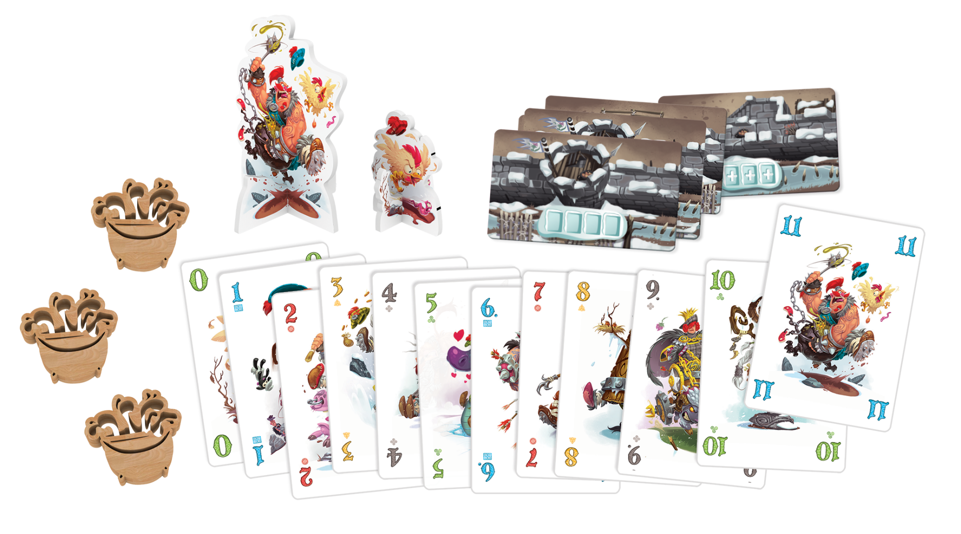 • Contenu : 60 cartes Siège, 11 cartes Tactique, 7 tuiles Muraille, 3 pions Chaudron d'huile, 2 aide de jeu, 2 silhouettes et 1 livret de règles.