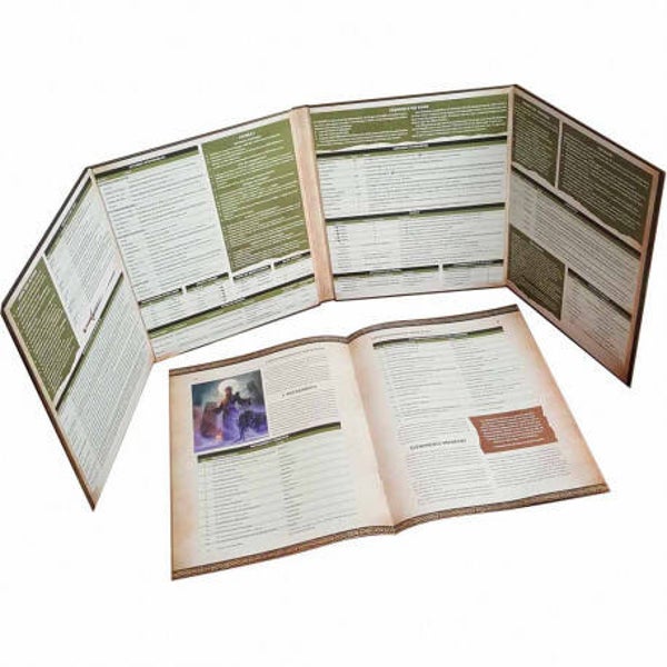Cet ouvrage inclut toute une série de règles de référence faciles à consulter pendant le jeu, ainsi qu’un écran du maître de jeu à quatre panneaux contenant tous les tableaux essentiels du livre de base de Conan. Vous aurez donc tous les outils nécessaires pour donner vie au monde d’Howard.