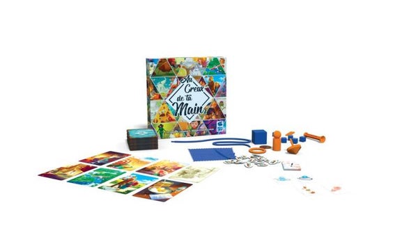 « Au Creux de ta Main » est un jeu original et poétique vous invitant à jouer avec le sens du toucher. Le jeu raconte la vie d’un grand-père, Léon, qui présente ses souvenirs à ses petits-enfants. Les souvenirs sont répartis sur 100 cartes joliment illustrées. Le jeu contient aussi 11 Objets pour que les joueurs miment les souvenirs de Léon. À son tour, un joueur pioche une carte, choisit des objets et mime le souvenir dans la main d’un joueur qui a les yeux fermés et joue le rôle du grand-père. Ce dernier se concentre sur les sensations ressenties grâce au mime. Les adversaires voient également le mime et doivent trouver, parmi leurs cartes en main, celle qui peut correspondre à la scène mimée afin de brouiller les pistes du grand-père. Saura-t-il retrouvé le bon souvenir parmi 8 cartes différentes ? Léon retrouvera-t-il le bon souvenir selon ce qu’il a ressenti au creux de sa main ?